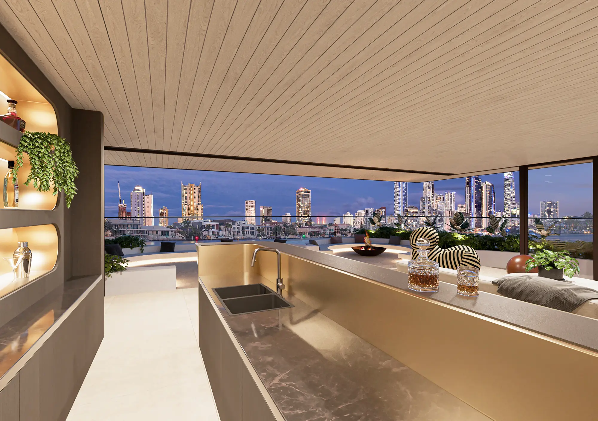 Designed for a lifestyle of elevated entertaining, the rooftop terrace offers uninterrupted city vistas while the ground-level pool, alfresco and living zones flow seamlessly toward the riverfront. Located within an exclusive Broadbeach Waters pocket, this residence is tailored to its iconic setting.