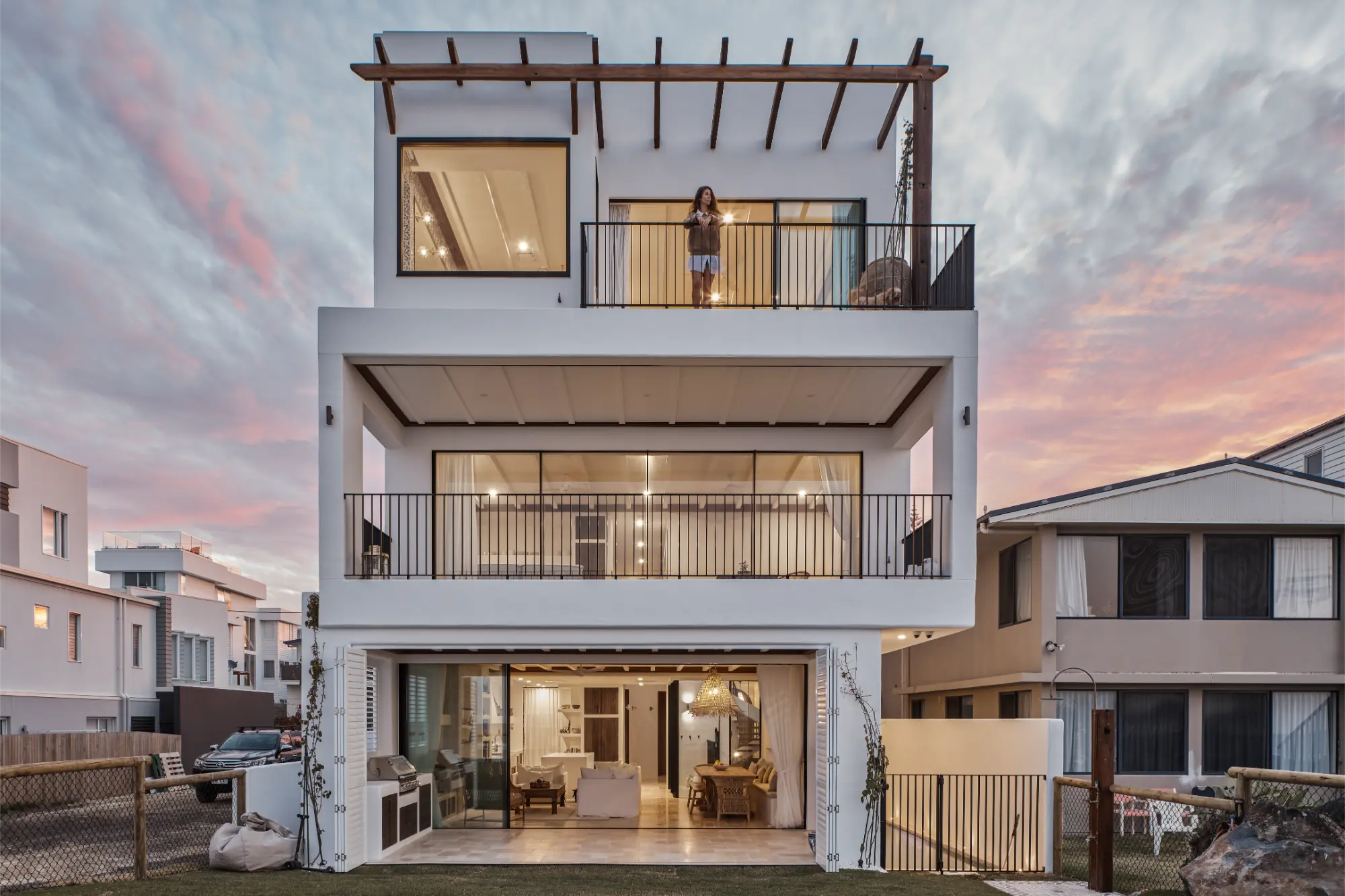 An architectural statement in Palm Beach, Queensland, Jefferson 849 is a refined blend of European influence and relaxed coastal living. Inspired by the client’s vision of merging Mediterranean elegance with Byron Bay’s laid-back charm, this residence showcases a seamless interplay of textures and tones.